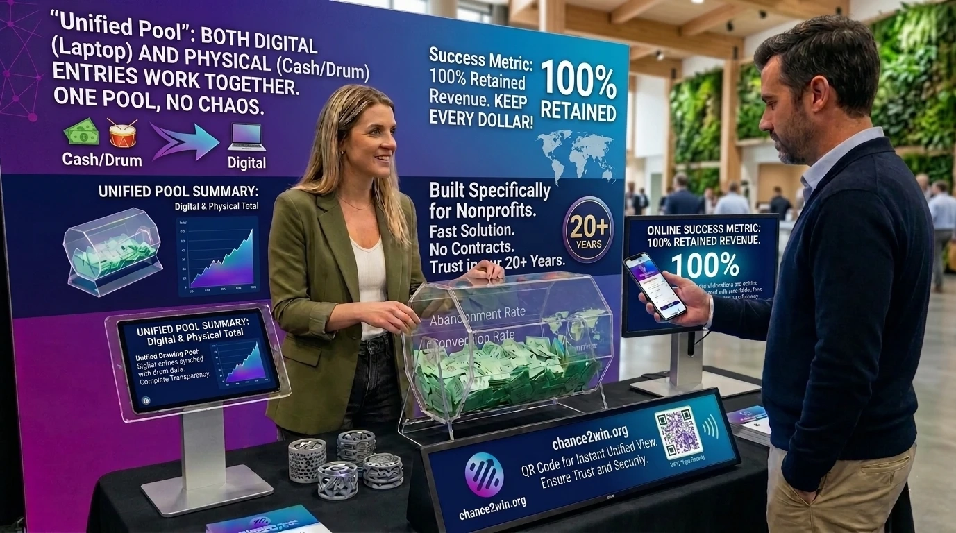 Chance2Win is an online raffle platform built specifically for nonprofit organizations. Unlike general fundraising tools that added raffles as an afterthought, Chance2Win was designed from the ground up for raffles — supporting every format nonprofits actually run, including traditional drawings, basket raffles, Queen of Hearts, 50/50 raffles, duck races, ball drops, and hybrid events that combine online ticket sales with cash and check entries in one unified drawing pool.